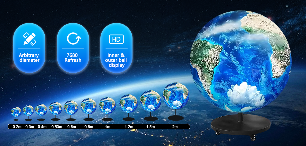0.2m/0.3m/0.4m/0.5m/1m/1.2m/1.5m/2m/2.5m/3m spherical LED screen Customize any diameter size |