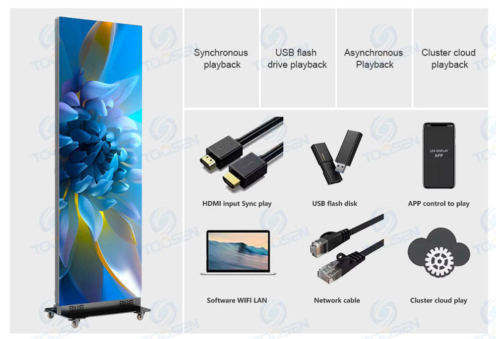 Can release pictures, videos, scrolling text and other content for loop playback through mobile phones, tablets, computers and U disks